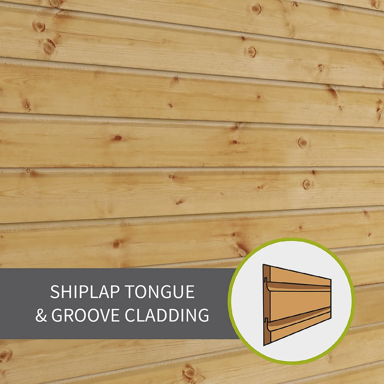 - Shiplap cladding – Interlocking tongue and groove boards feature a protective lip to offer a strong, premium and weatherproof panel