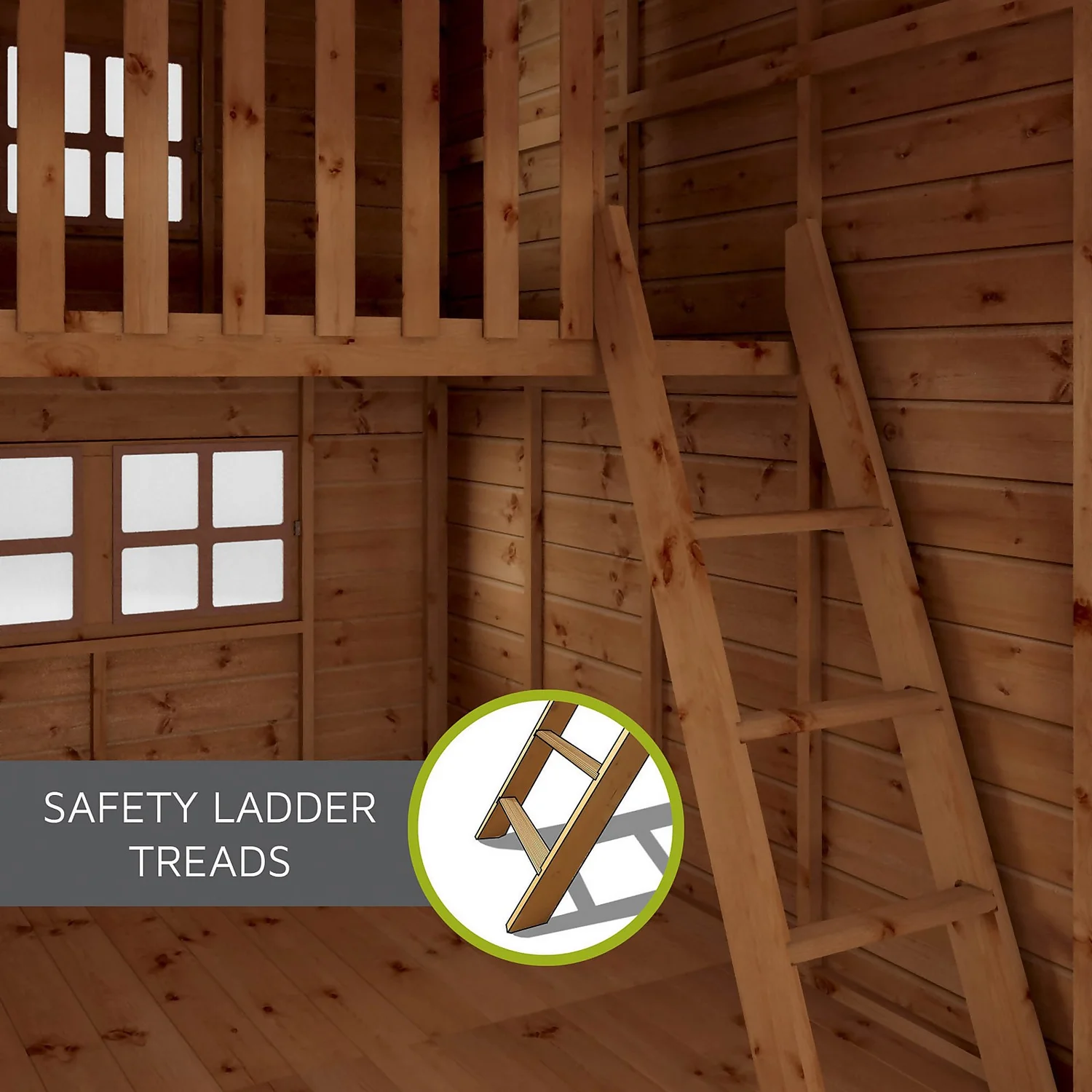 The plastic slide is the best way for young ones to get off the raised platform and is guaranteed to provide many hours of entertainment.