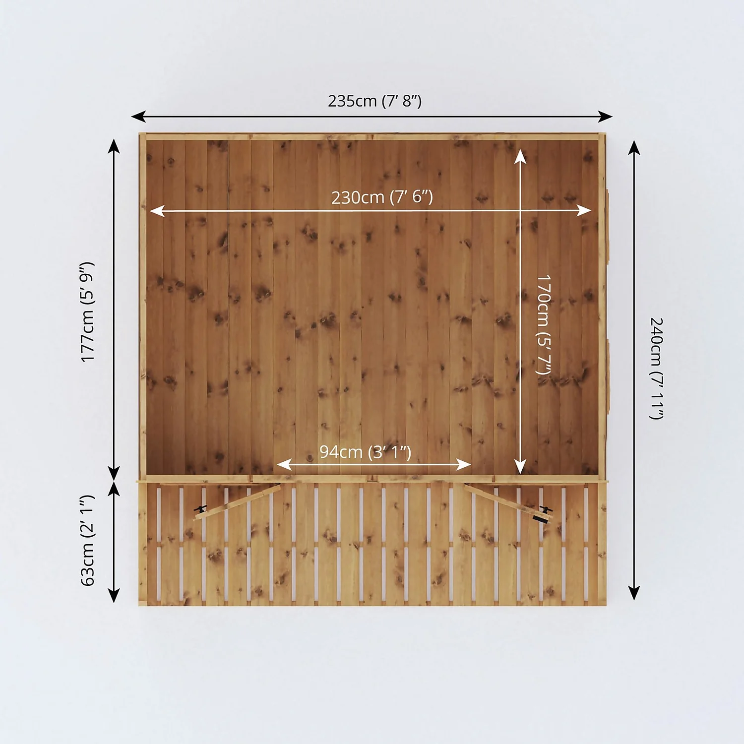 The Mercia 8ft x 8ft Traditional Summerhouse is a spacious and stylish summerhouse that offers the perfect spot to sit back and relax during the summer months. Three large styrene glazed windows allow light to flood the interior and styrene glazed French doors open out onto the sheltered veranda, creating a light, airy and welcoming space to enjoy.