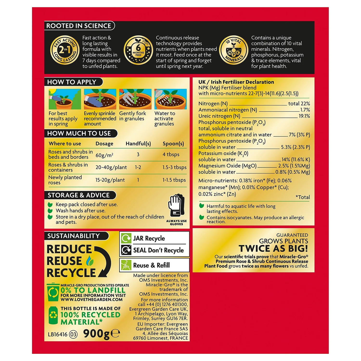 Miracle-Gro® Premium Rose & Shrub Continuous Release Plant Food – 900g