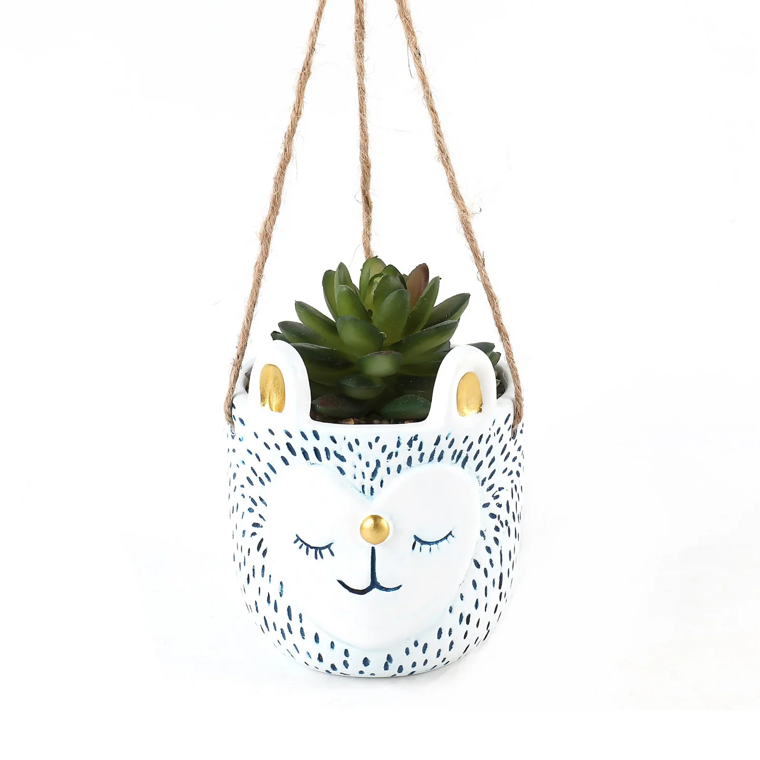 A fun and characterful way to add some greenery to your home, this hand painted animal planter is hung with twine for a natural finish.