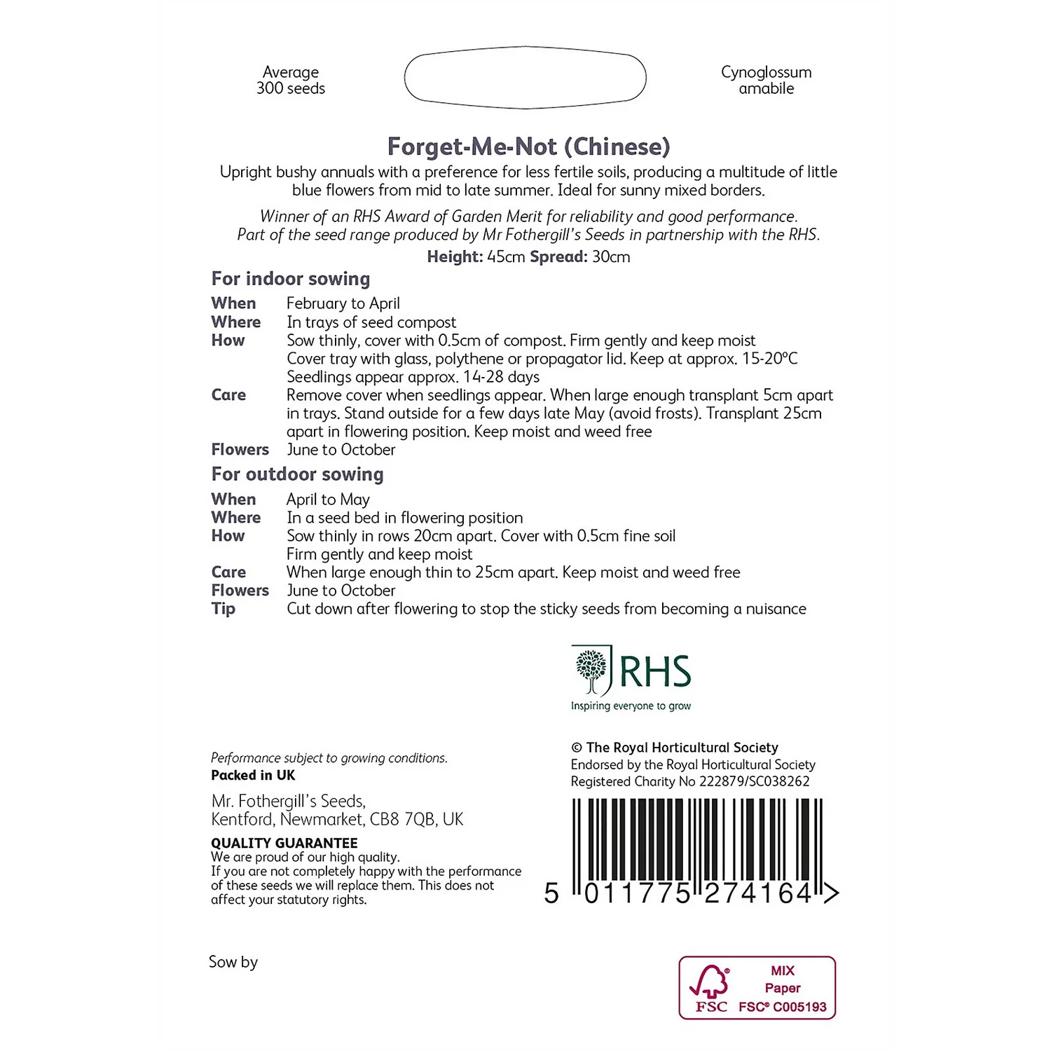 | Additional Information | Flower seeds |